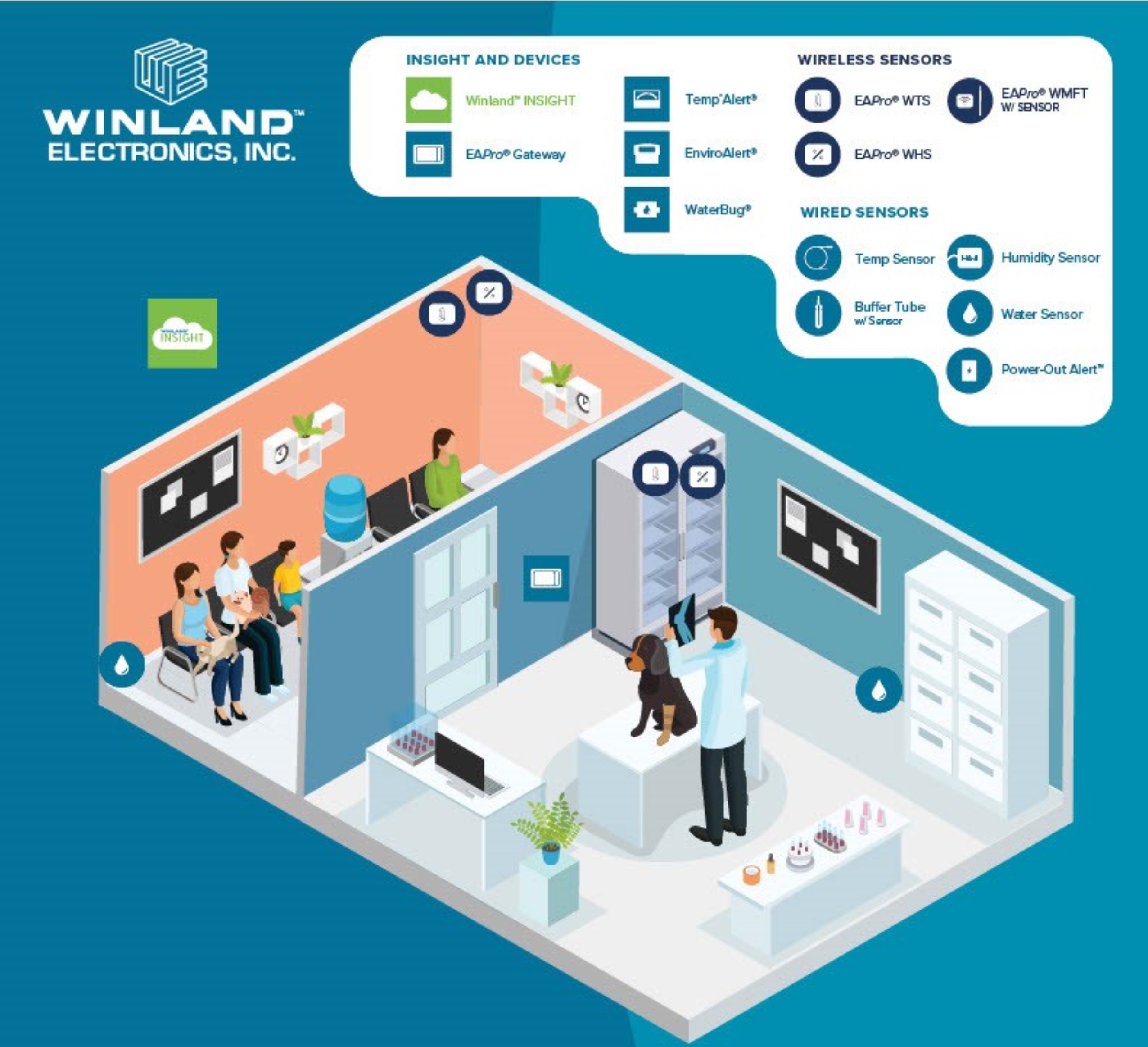 The primary concern of a Veterinarian professional is the patients, whether that patient is someone’s pet companion, family farm or contribution to the food chain. The practice of maintaining ideal environmental conditions is vital to the management of a veterinary practice. You need precise measurement of heat, gas levels, humidity, presence of water intrusion, absence of water, and much more. Winland™ INSIGHT is an automated, cloud-based, critical-condition monitoring service available in the veterinary industry. Winland™ devices, sensors, and INSIGHT will allow you to initiate the fastest possible resolution to coolers, freezers, kennels, barns, and other locations that an animal resides or where the necessary food and medications are stored. INSIGHT provides early detection of environmental threats and allows you to initiate the fastest-possible resolution to protect assets and inventory, maintain compliance with governmental regulations and safeguard your reputation.
